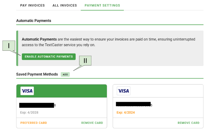 a. A saved credit card must be saved as a preferred card under “Saved Payment Methods” to enable Automatic Payments.