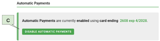 c. Disable Automatic Payments - Automatic Payments can be disabled at any time.