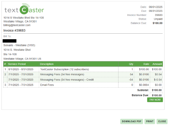This will not cancel your TextCaster services. It is the User’s responsibility to ensure that payments are made in a timely manner to avoid temporary suspension of services due to non-payment.