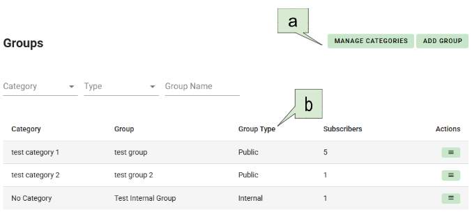 NOTE: Internal Groups DO NOT appear on the public Sign up Page. Internal Groups are groups you wish to limit who can subscribe to the group. Some examples for business are department managers, reporters, IT staff and sales associates. Subscribers in the Internal Groups must be manually added as subscribers are not offered the ability to subscribe to Internal Groups from the Signup Page.