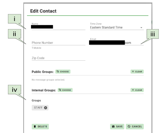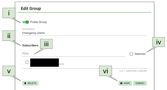 You may edit the subscriber’s contact information and Public and Internal Groups.