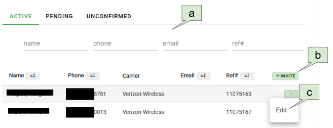 To invite individual contacts, click on the Invite button. In the Invite Contact screen you can enter the following information:
